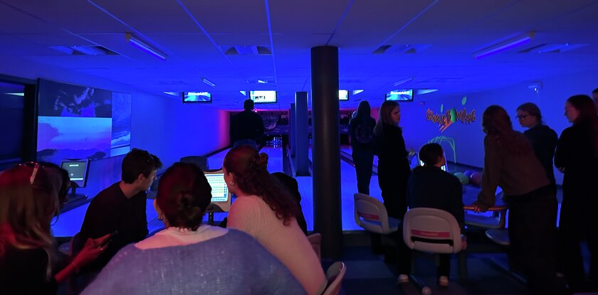 Sosialt opplegg på kvelden med bowling og pizza.